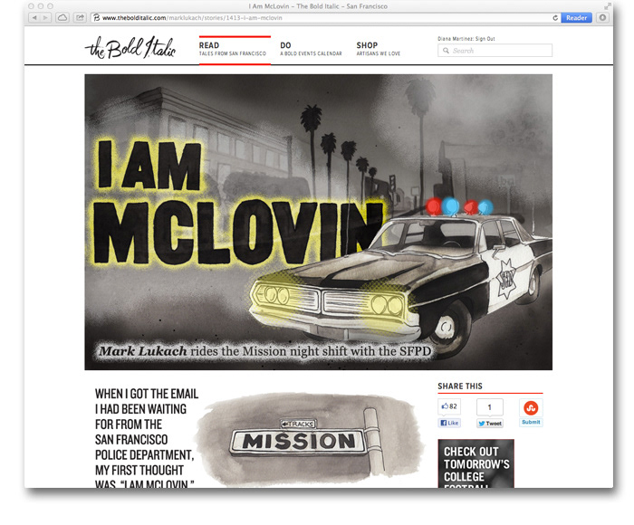 Illustrations for the Bold Italic article by Mark Lukach, on a night riding with the San Francisco Police Department in the famous Mission District.